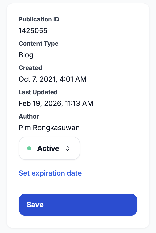 You can also set an expiration date for your content. Once the expiration date is reached, the content will automatically expire and revert to Draft status.