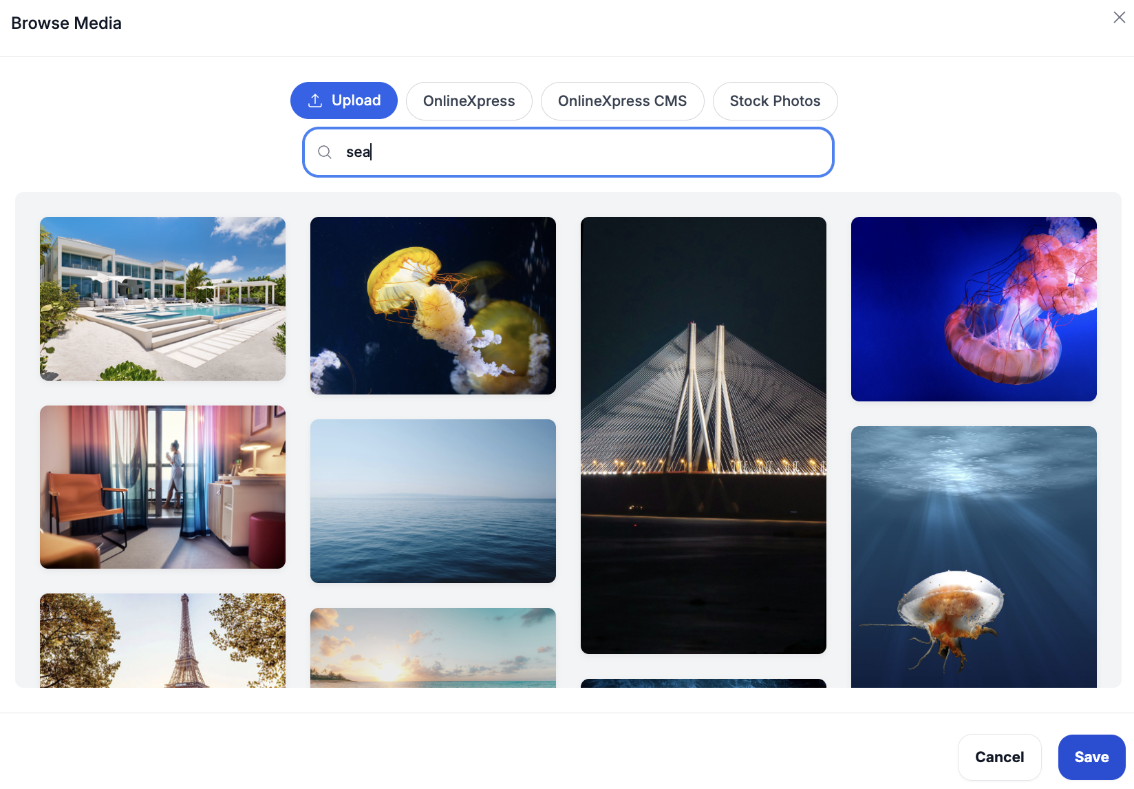 You can also choose images from the Photos Library, which includes pictures from Your Website, Your CMS, and stock photo collections.